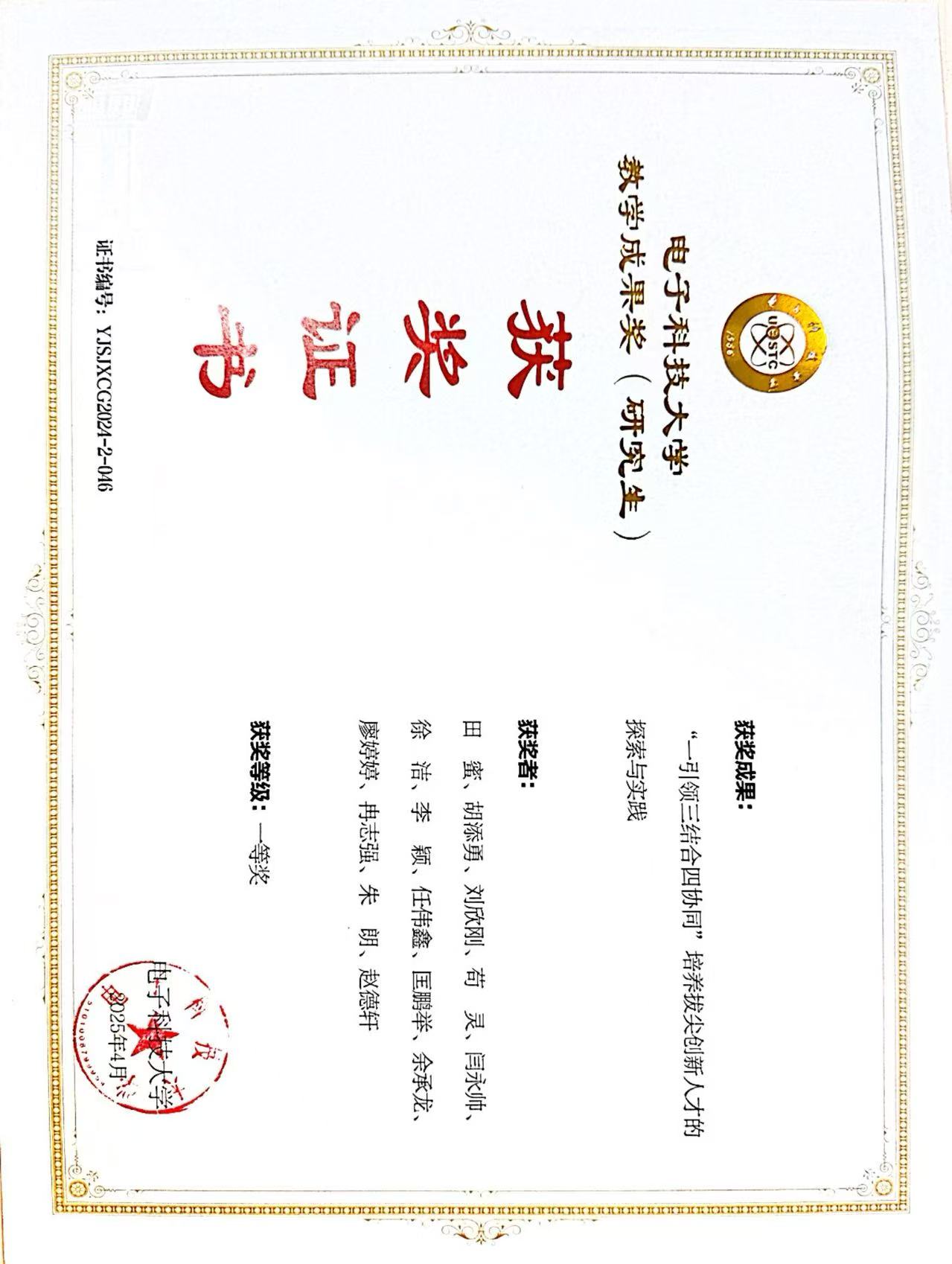 颁奖单位:电子科技大学
